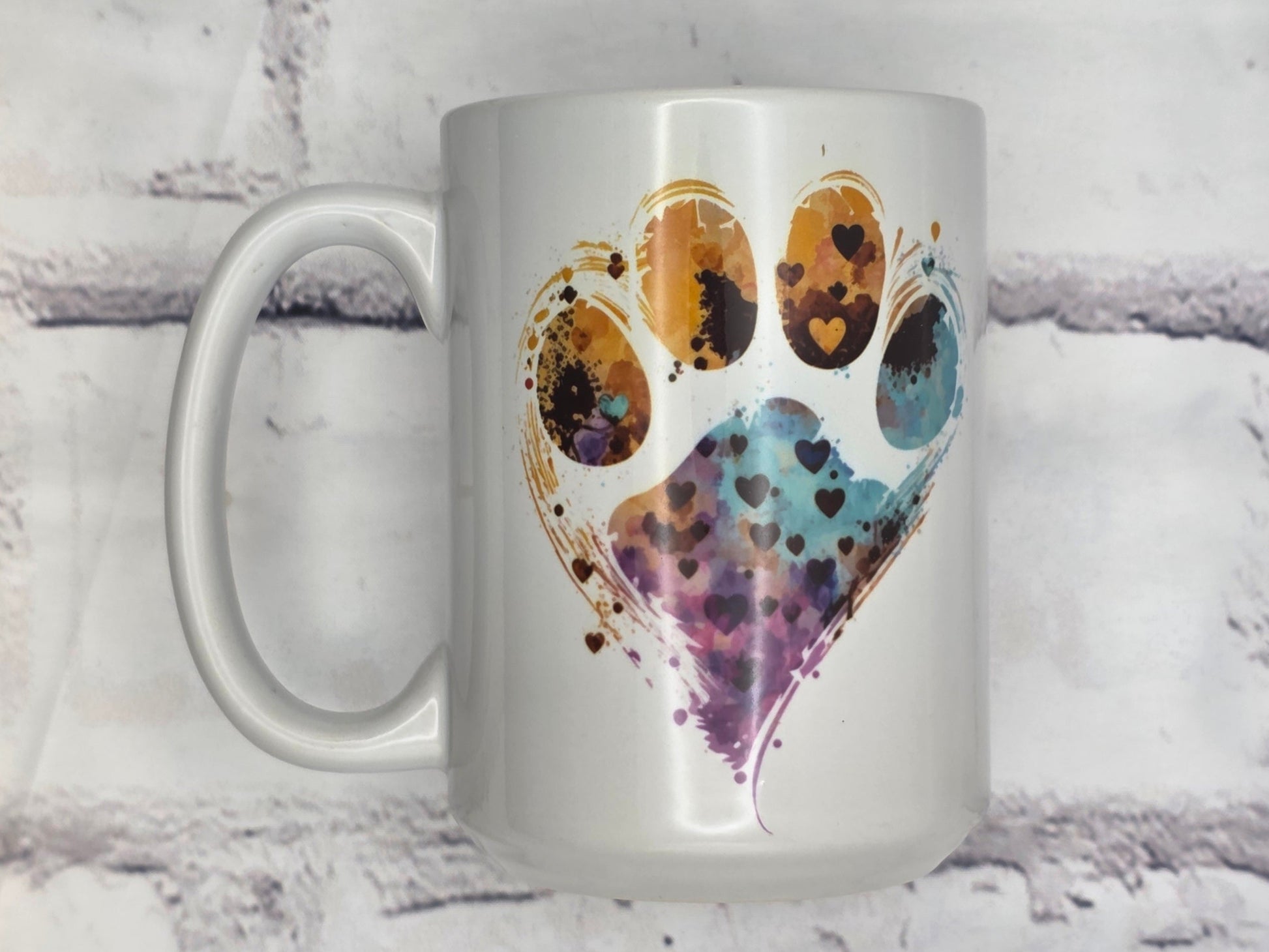 Colorful heart paw print (White) - 15 oz MUG